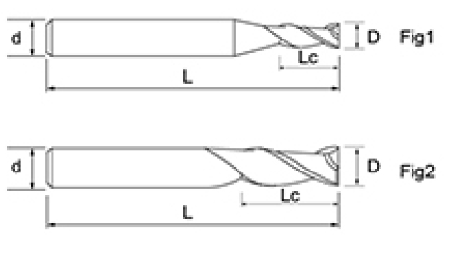 | Nee. | Diameter D | Fluit lengte Lc | Totale lengte L | Schacht Dia d | Aantal messen F |