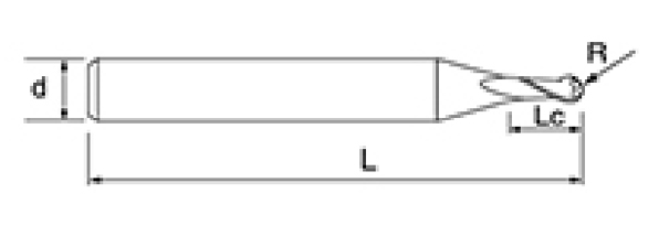 | Gereedschap serie | Diameter | Straal | Hoekradius | Fluit lengte | Effectieve lengte | Totale lengte | Schacht Dia | |||