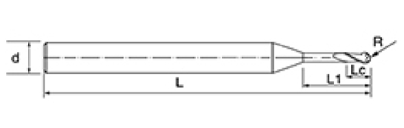 | Gereedschap serie | Diameter | Straal | Hoekradius | Fluit lengte | Effectieve lengte | Totale lengte | Schacht Dia | |||