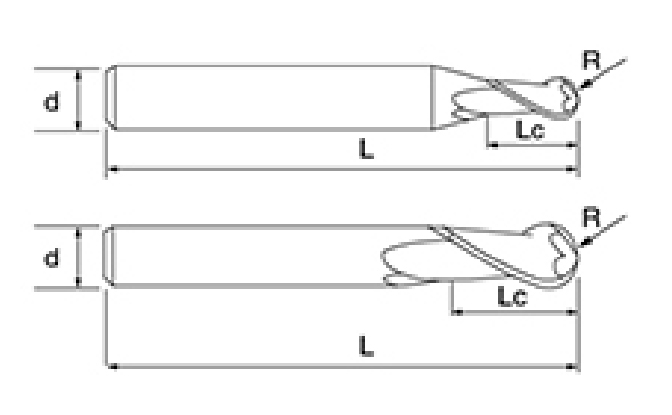 | Gereedschap serie | Diameter | Straal | Hoekradius | Fluit lengte | Effectieve lengte | Totale lengte | Schacht Dia | |||