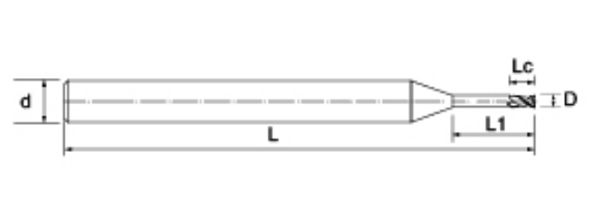 | Nee. | Diameter D | Fluit lengte Lc | Effectieve lengte L1 | Totale lengte L | Schacht Dia d | Aantal messen F |