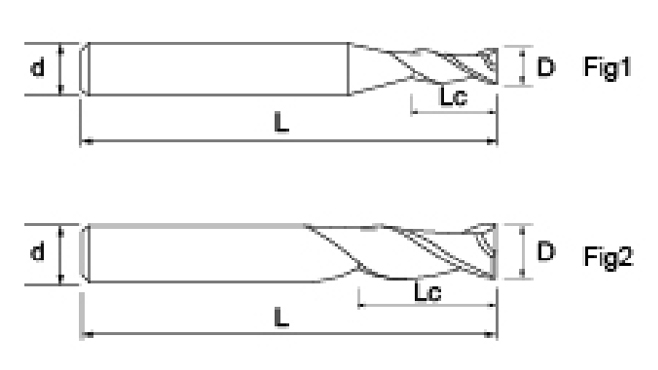 | Nee. | Diameter D | Fluit lengte Lc | Totale lengte L | Schacht Dia d | Aantal messen F |