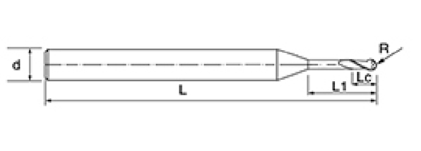 | Gereedschap serie | Diameter | Straal | Hoekradius | Fluit lengte | Effectieve lengte | Totale lengte | Schacht Dia | |||