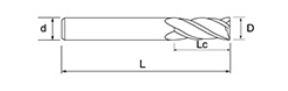 | Nee. | Diameter D | Fluit lengte Lc | Totale lengte L | Schacht Dia d | Aantal messen F |