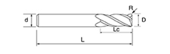 | Gereedschap serie | Diameter | Straal | Hoekradius | Fluit lengte | Effectieve lengte | Totale lengte | Schacht Dia | |||