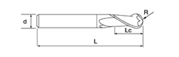 | Gereedschap serie | Diameter | Straal | Hoekradius | Fluit lengte | Effectieve lengte | Totale lengte | Schacht Dia | |||