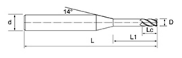| Gereedschap serie | Diameter | Straal | Hoekradius | Fluit lengte | Effectieve lengte | Totale lengte | Schacht Dia | |||
