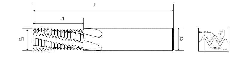 BSP (G) 55° imperiale draadfrees voldoet aan de ISO 228-1-normen en is speciaal ontworpen voor het bewerken van schroefdraad uit de BSP G-serie. Met een draadhoek van 55° is deze frees geoptimaliseerd voor cilindrische schroefdraad, afwijkend van BSPT (British Standard Pipe Taper threads). Omdat BSP G-schroefdraden niet taps toelopend zijn, moet de afdichting worden bereikt met behulp van extra componenten zoals O-ringen of pakkingen.